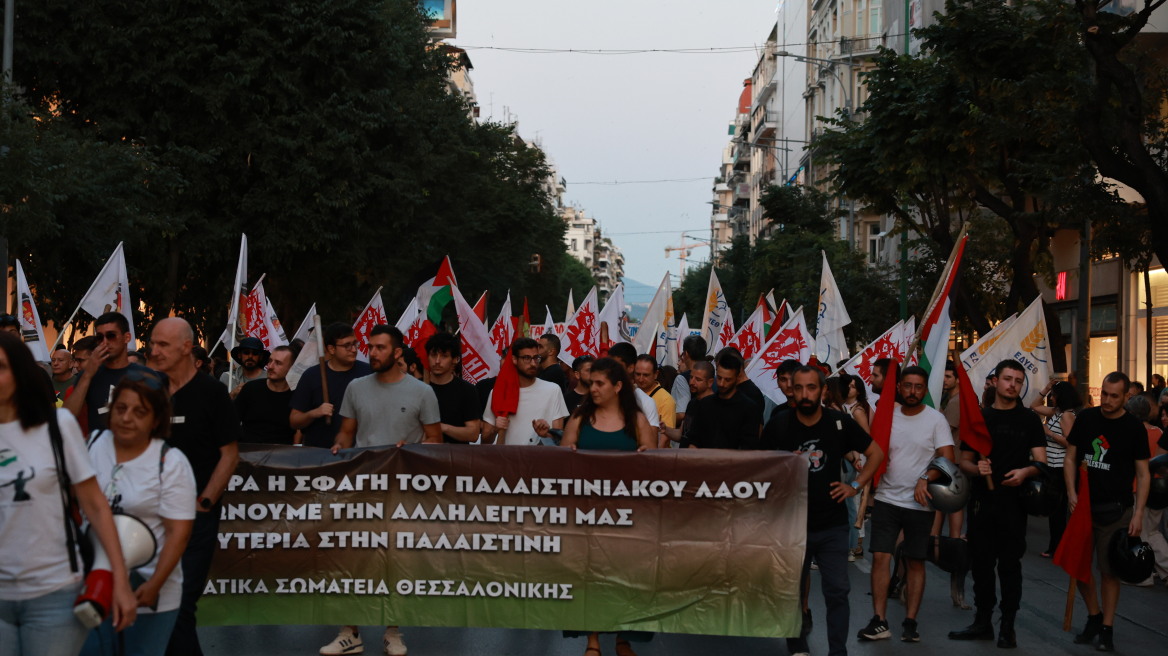 Πορεία αλληλεγγύης προς τον Παλαιστινιακό λαό, πραγματοποίησαν μέλη σωματείων εργαζομένων, μέλη του ΠΑΜΕ, της ΕΔΥΕΘ, φοιτητές , εκπρόσωποι φορέων. Η πορεία ξεκίνησε...