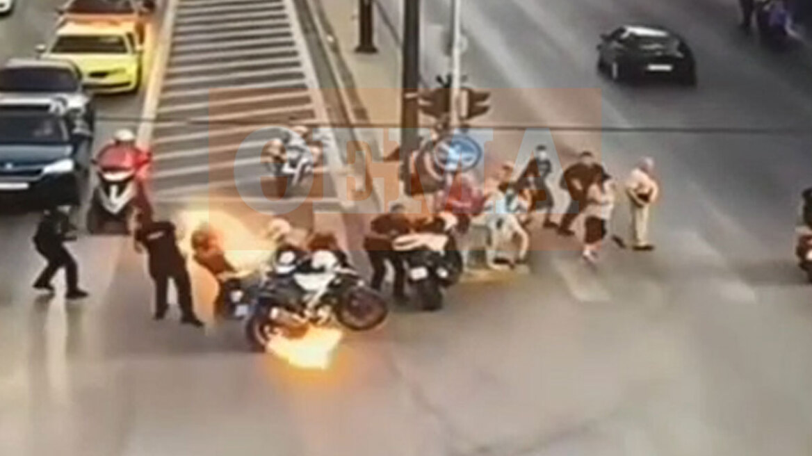 Τη στιγμή της επίθεσης σε βάρος τεσσάρων αστυνομικών με βόμβες μολότοφ στο τέλος της πορείας για την Παλαιστινή το απόγευμα της Κυριακής,...