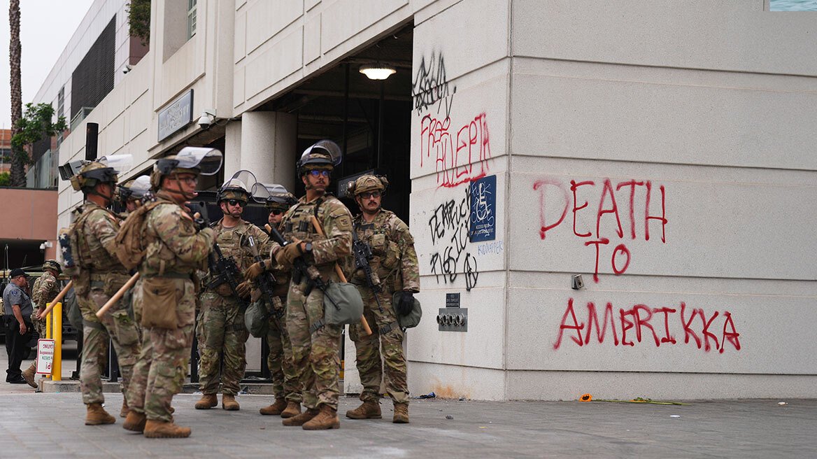 Μέλη της Εθνοφρουράς της Καλιφόρνια κατέφτασαν στο Λος Άντζελες το πρωί της Κυριακής (τοπική ώρα, γύρω στις 19:00 ώρα Ελλάδος), αφού ο...