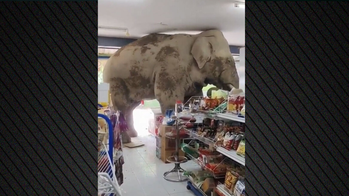 Ένας πεινασμένος ελέφαντας από το Εθνικό Πάρκο Khao Yai στην Ταϊλάνδη προκάλεσε χάος σε ένα τοπικό γωνιακό κατάστημα, καθώς μπήκε μέσα και...