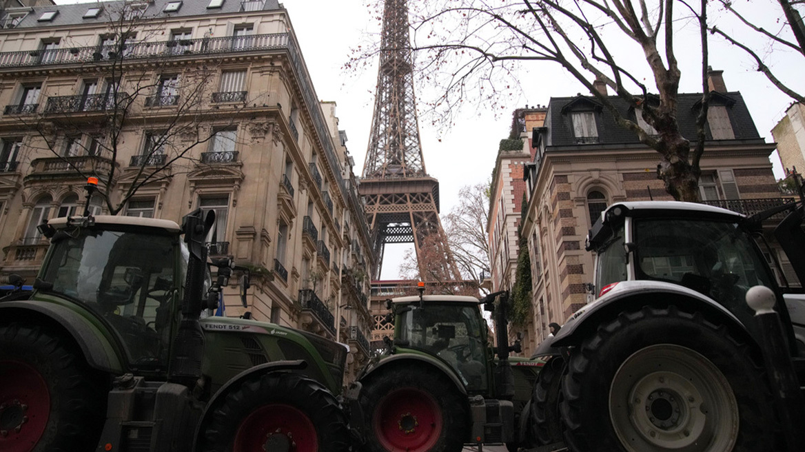 Γάλλοι αγρότες απέκλεισαν δρόμους στο Παρίσι και σημεία αναφοράς όπως η Αψίδα του Θριάμβου με τα τρακτέρ τους σήμερα διαμαρτυρόμενοι για μια...